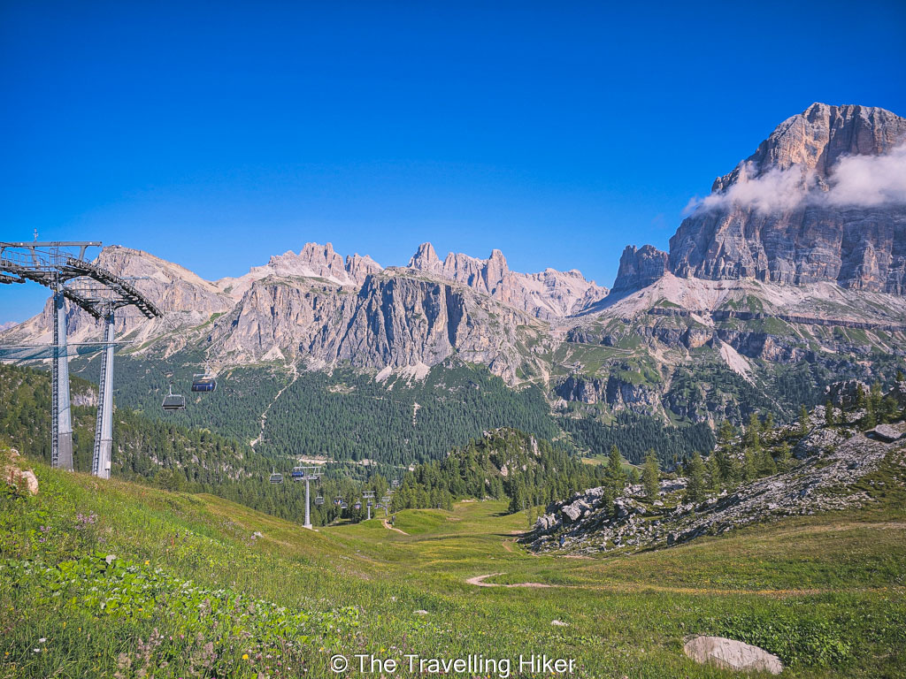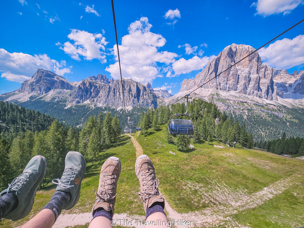 From this starting point, you can either take the Seggiovia Cinque Torri chair lift or hike up along the trail that runs under the chairlift.