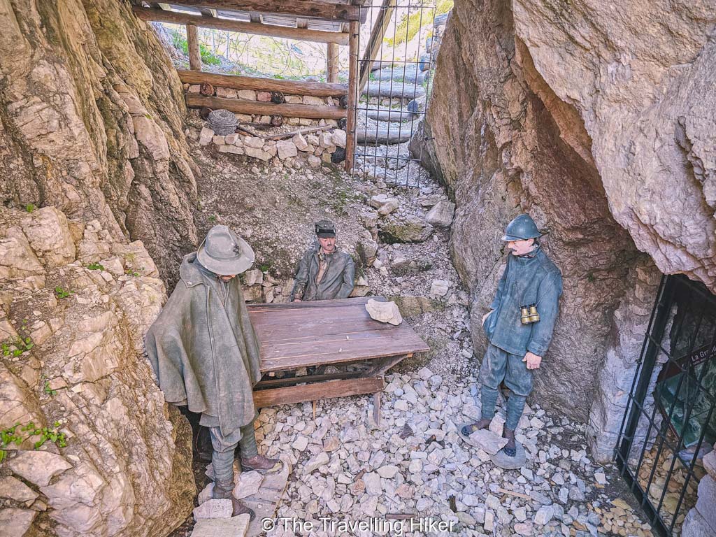 Just a few meters into your hike, you will find the first entry to the trenches on your left. It is actually quite interesting to visit the trenches, there are plenty of informative signs that you can read and learn about the conditions soldiers faced here and what events of the war took place here. Plus the views from the trenches to Tofana di Rozes and the nearby peaks are just amazing. We had a very nice time exploring this area.