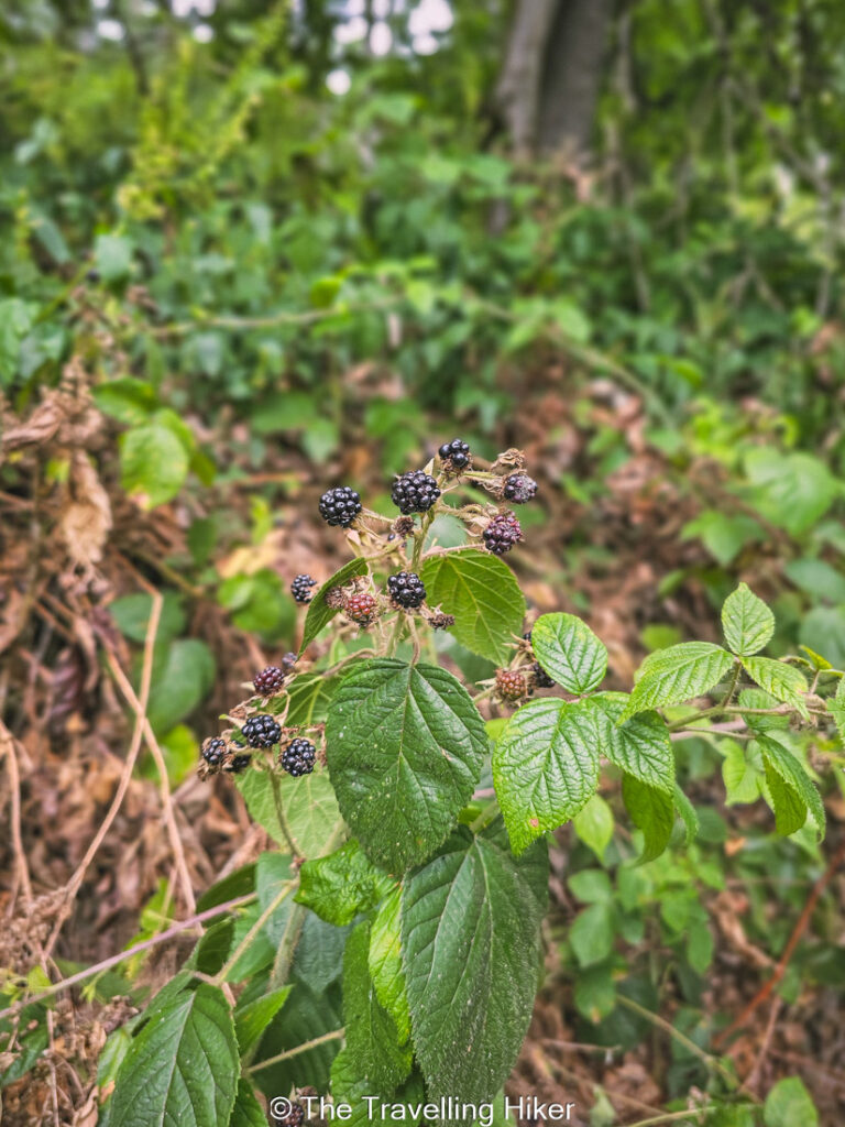 After 1 kilometer walking near the river, the trail will go inland again and it will split into two different trail paths, take the one to the right that goes uphill. This part of the trail is not spectacular as there are not many viewpoints. However, if you do the trail at the end of July like we did, you will find plenty of wild blackberries. Do not hesitate to take as many as you want, they are delicious!
