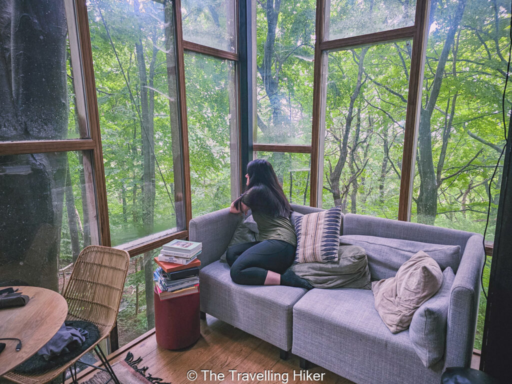 Looking for a more unique accommodation? Then, you can drive 30 minutes to Humain where you can find Stay Ici, which offers unique accommodations within the woods like hanging cabin from the trees. We chose the Glass Cube, which as it’s name says is a glass cube hanging from the trees. Here, you will have no internet connection and you can disconnect and enjoy spending a night in nature.