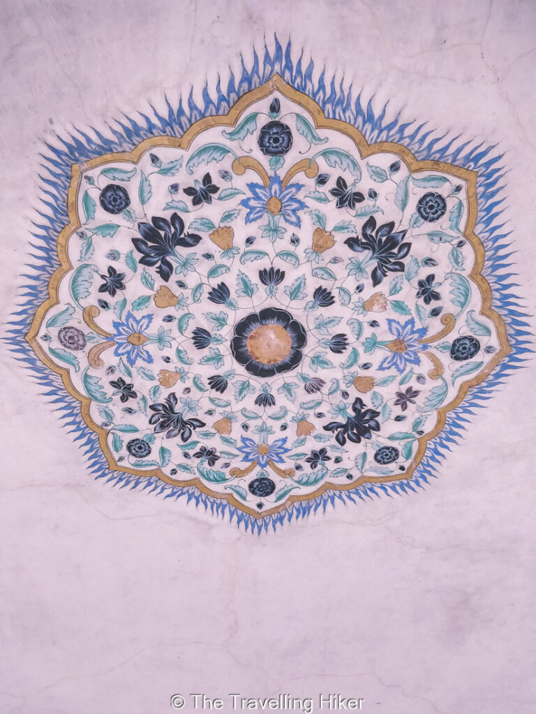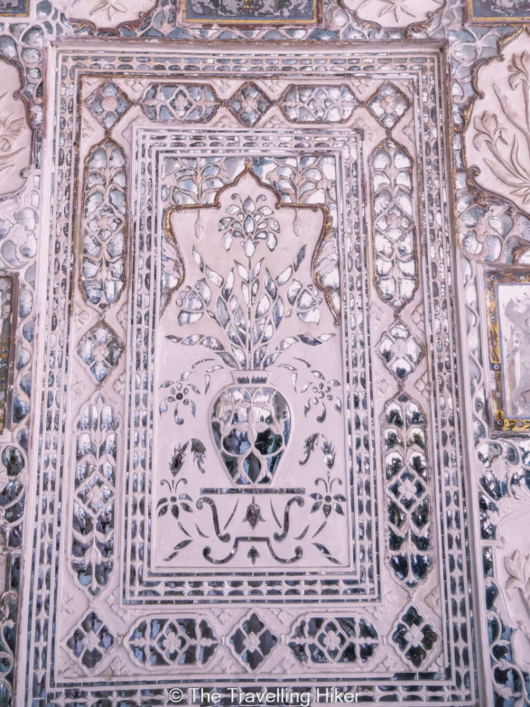 One of the highlights inside Amber Fort is the Sheesh Mahal, or Mirror Palace. Its walls and ceilings are decorated with thousands of tiny mirrors that reflect light in a soft, shimmering way.