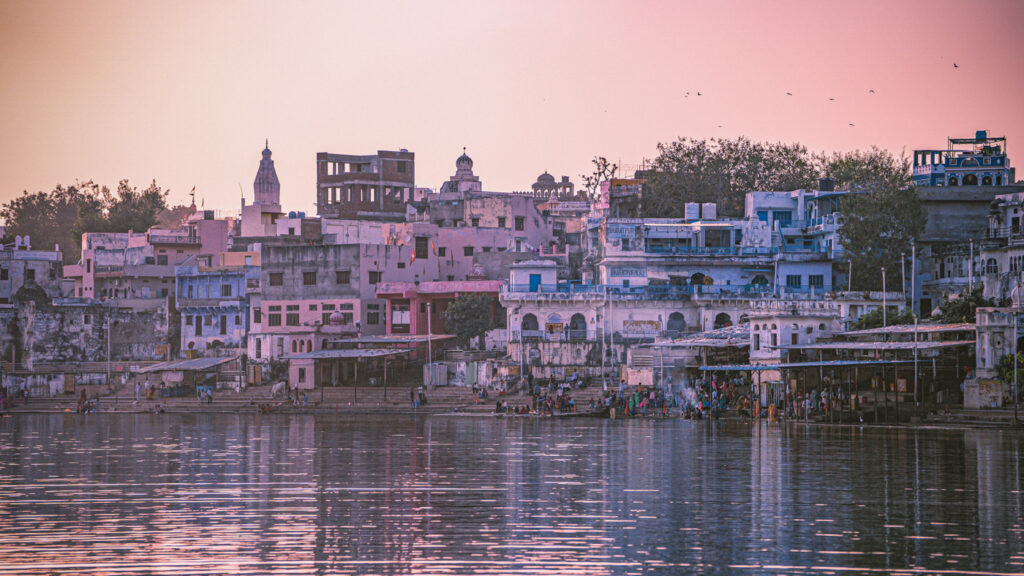 In the evenings, the town takes on a different rhythm. Locals and travelers gather by the ghats to watch the sunset reflect off the lake, while the sound of temple bells and devotional songs fills the air.