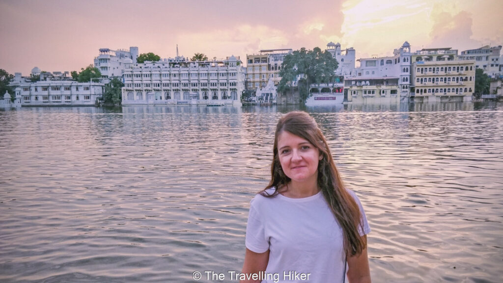 After checking in at our next accommodation, we took a tuk tuk to Pichola Lake to watch sunset. There is something truly magical about watching the sunset over Lake Pichola. The sun sets behind the Aravalli hills and the lake gets hit with gold and pink light making the views beautiful.