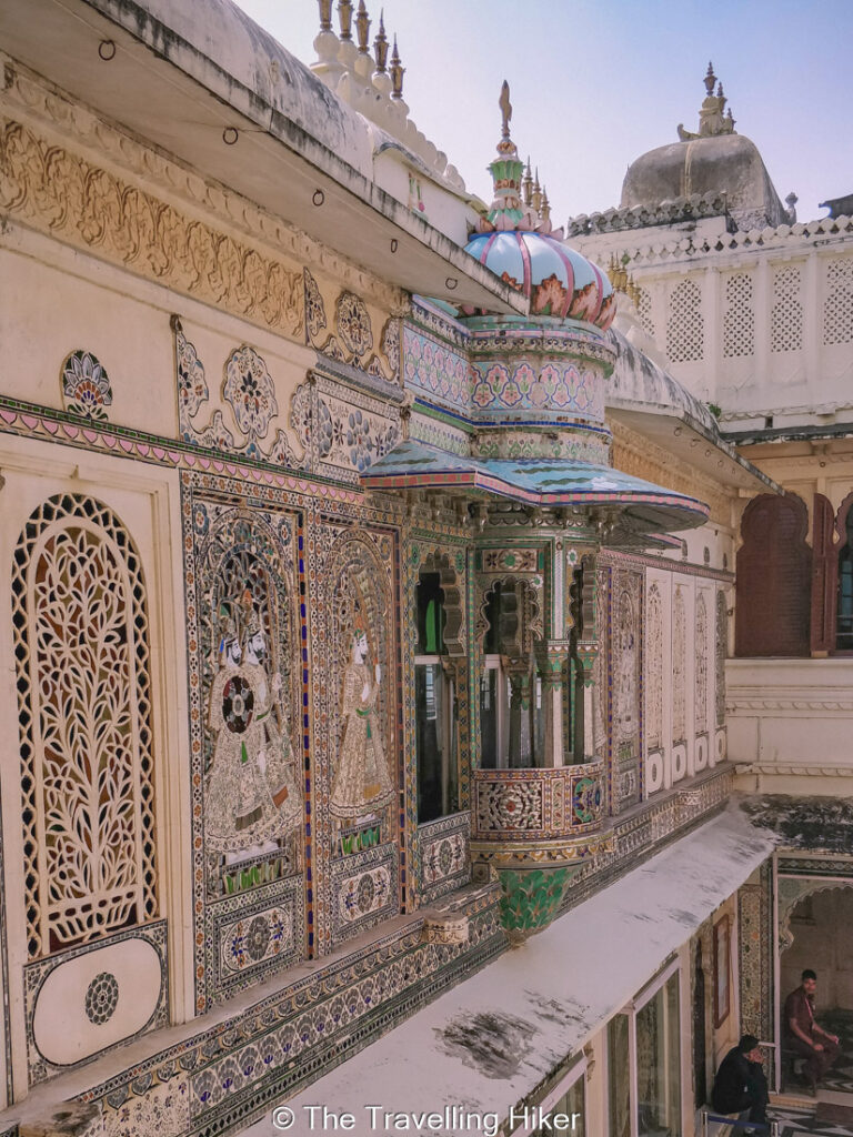 Exploring the palace is like walking through layers of time. The rooms are filled with detailed paintings, colorful glasswork, and well-preserved royal artifacts that brings the city’s heritage to life. Highlights like the Mor Chowk, or Peacock Courtyard, showcase stunning mosaics in deep blues and greens, while the terraces offer some of the best views in Udaipur. Standing there, looking out at the Lake Palace floating on the water, it’s easy to see why the city has captured travelers’ hearts for generations.